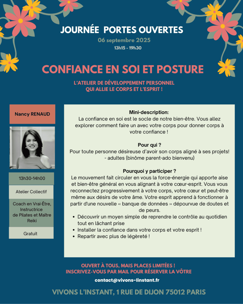 👉 Inscrivez-vous dès maintenant pour réserver votre place à l’atelier “Confiance et Posture” !