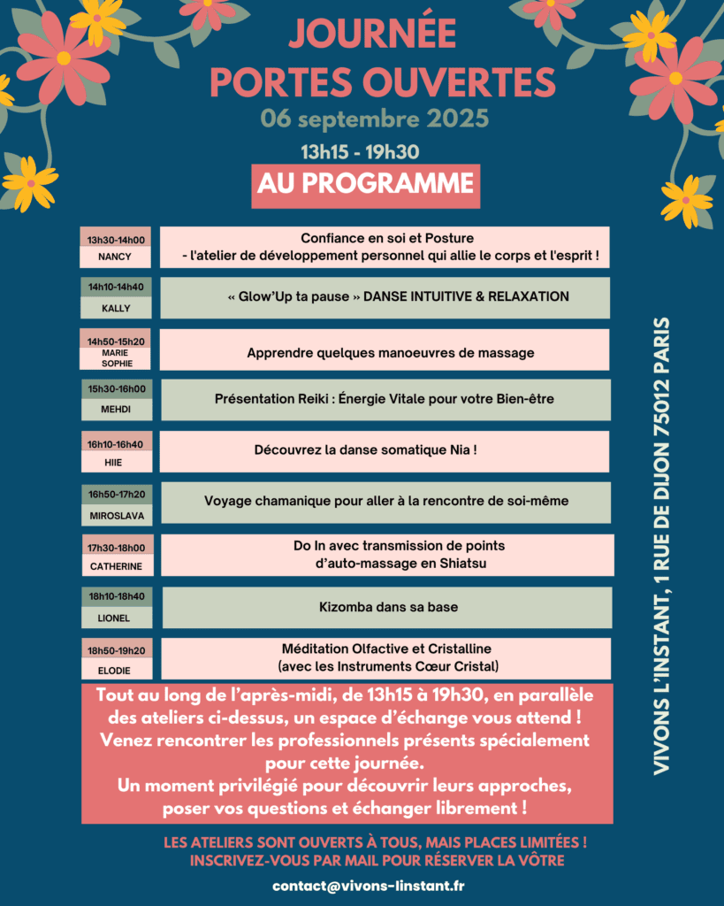 - 🗺 Lieu : Vivons L’Instant – 1 rue de Dijon, 75012 Paris